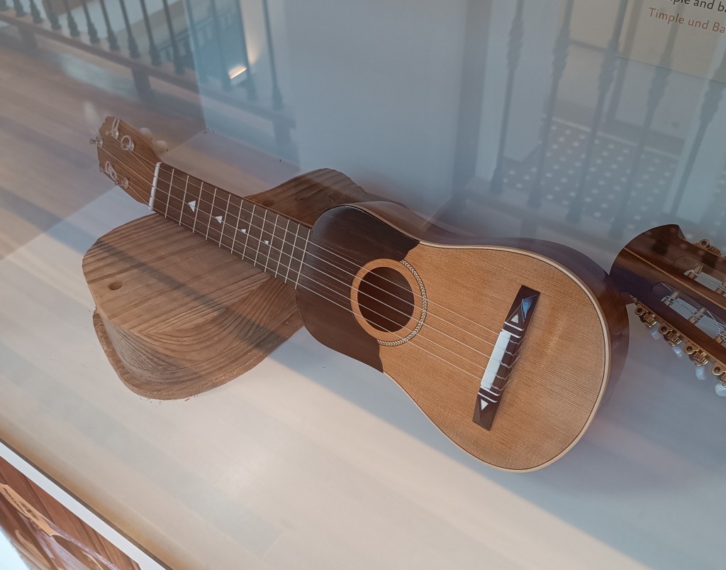 From the many exhibits on display, I would like to direct your attention to the timple on the first floor. This is our most representative musical instrument. Resembling a five-string ukulele, the sweetness of its sound perfectly complements the warmth and innocence of Canarian music. You can listen to the piece below while watching the sunset from the Faro.