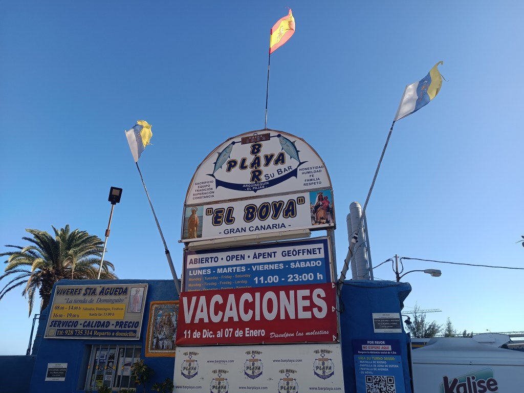 Returning to the promenade, you gaze at the boarded-up restaurant and read about its history and significance on the many placards scattered around the area. Apparently, it started as a small eatery for local fishermen in the 1950s. Now, the main promenade in El Pajar is named after the bar’s owner.