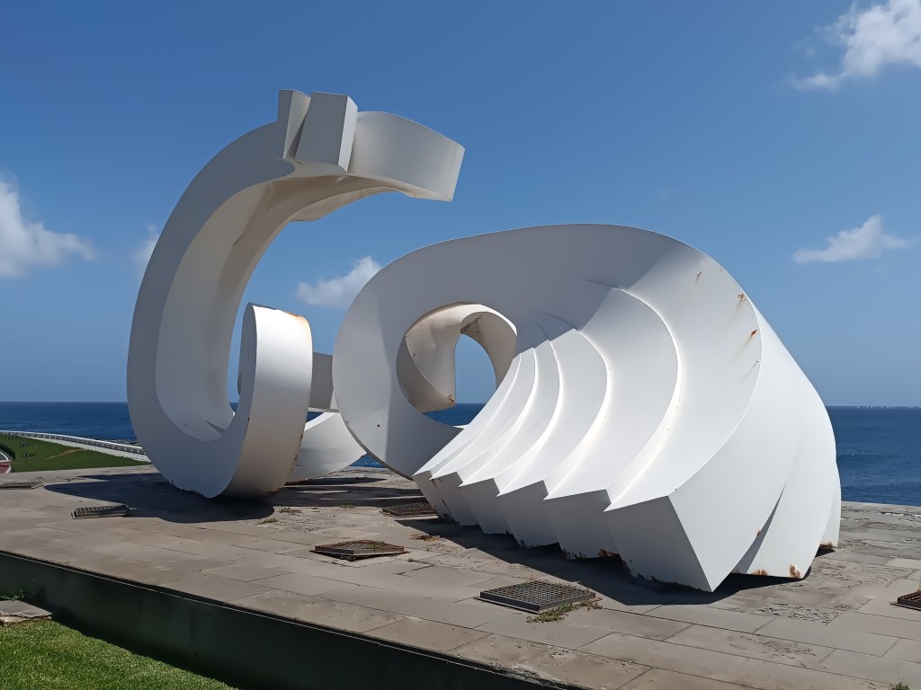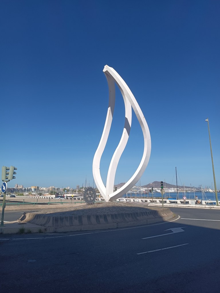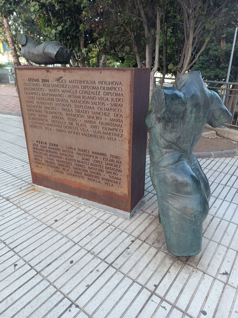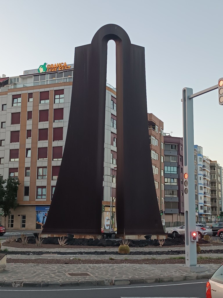 The next sculpture also sits inside a roundabout. It represents a big iron gate, and, unsurprisingly, its name is La Portada (“The Gate”). You should stop here for Chapter 8. The marina (Muelle Deportivo) and its Escolleras Jetty are right there, adjoining the Alcaravaneras beach, on the city’s port side. If you miss the stop, don’t worry, just alight at the Club Náutico and walk back. There are more sculptures there saluting the Canarian Olympians, most of them, naturally, in sailing.