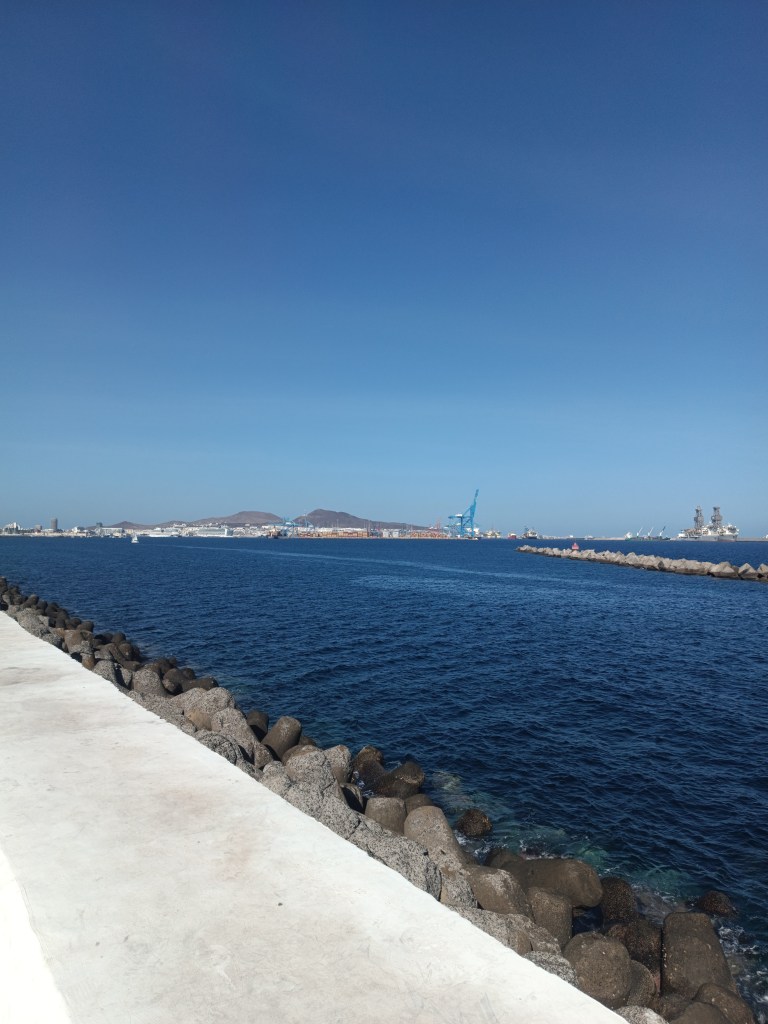 Obviously, the first of those places is the city itself. As you drive north on the GC-1, the distant view of Las Palmas will eventually show up on your windshield. The start of the city proper, and also the seawall itself, is marked with a small rest area on the right-hand side of the motorway featuring the Triton statue. From there, if you had a bike, you could cycle the whole 6 miles to La Isleta without any obstacles.