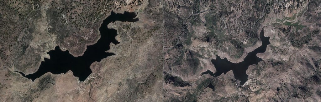 I was aware of these potential variations even as I was writing the novel, but none concerned me as much as those affecting the Presa de las Niñas reservoir, featured in Chapter 13. Like any inland body of water, I knew the lake’s outline would change with fluctuating water levels, so I definitely took a risk in making the story so reliant on the reservoir being fairly full. It was full when I scouted the location back in 2021, as you can see below: