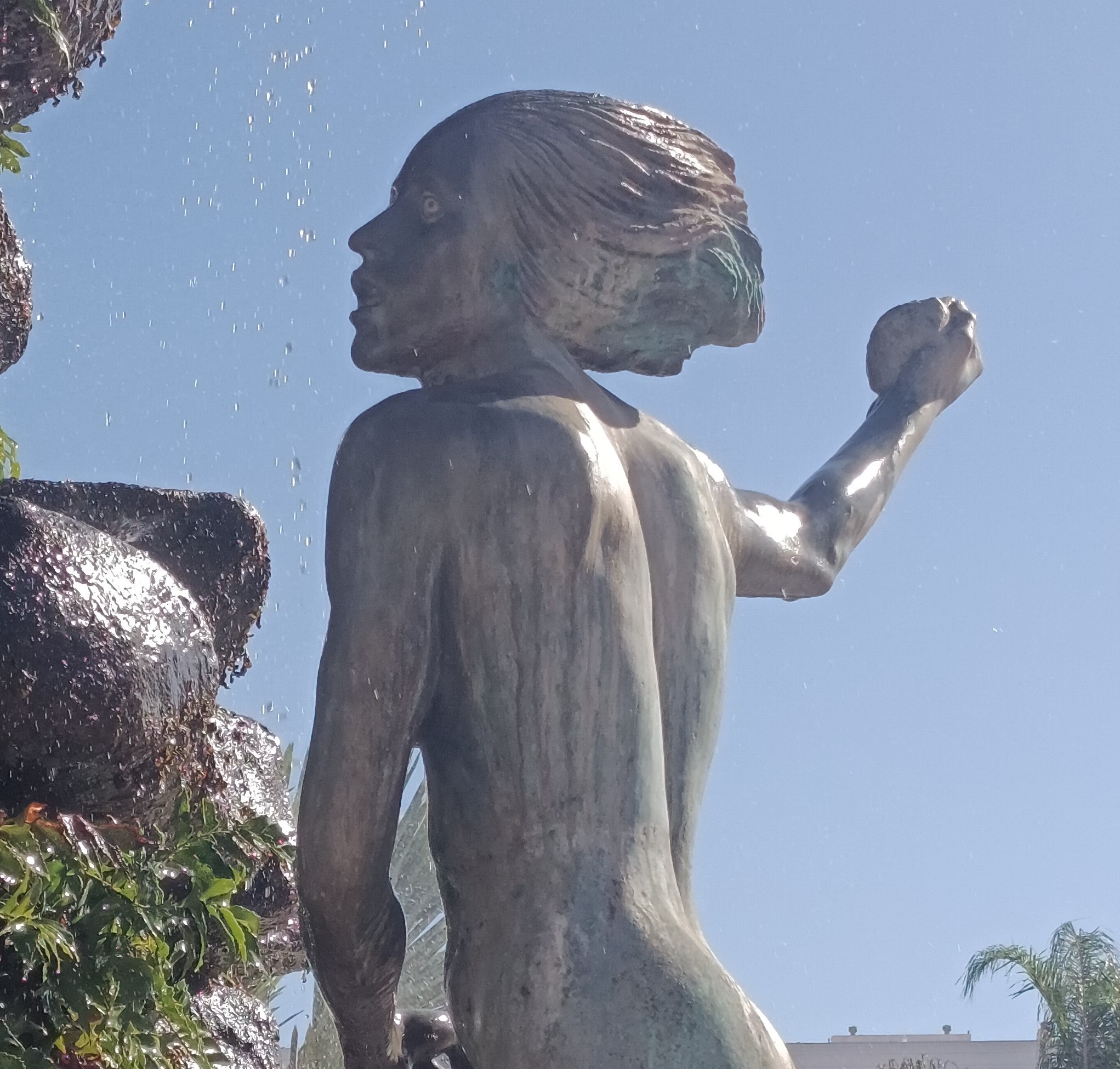 Of all the statues and sculptures featured in The Fire Demon novel, Manuel Bethencourt’s Atis Tirma monument in the Hotel Santa Catalina Gardens stands out as my favourite. I find the sheer feistiness and foreboding of its subjects truly captivating. And the crowning touch—the aboriginal figure vaulting off in defiance, pointedly away from the colonial-style hotel in the background—delivers a powerful statement of resistance and unyielding freedom.