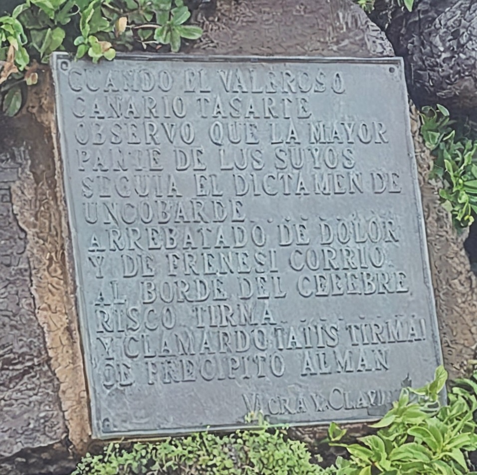 “And when the brave Tasarte saw that most of his fellow Canarii heeded the coward’s call, gripped by pain he ran to the edge of the Tirma cliff, and, to the cry of ‘Atis Tirma!’, he jumped off.”